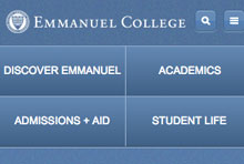 Planned, designed and hand-coded Emmanuel College's Interactive Campus Map. This was an instrumental tool for recruiting and allowed prospective students and families to imagine themselves on the 17-acre campus in the heart of Boston's Fenway neighborhood. View Desktop Version. Illustrator HTML/CSS/JQUERY CMS